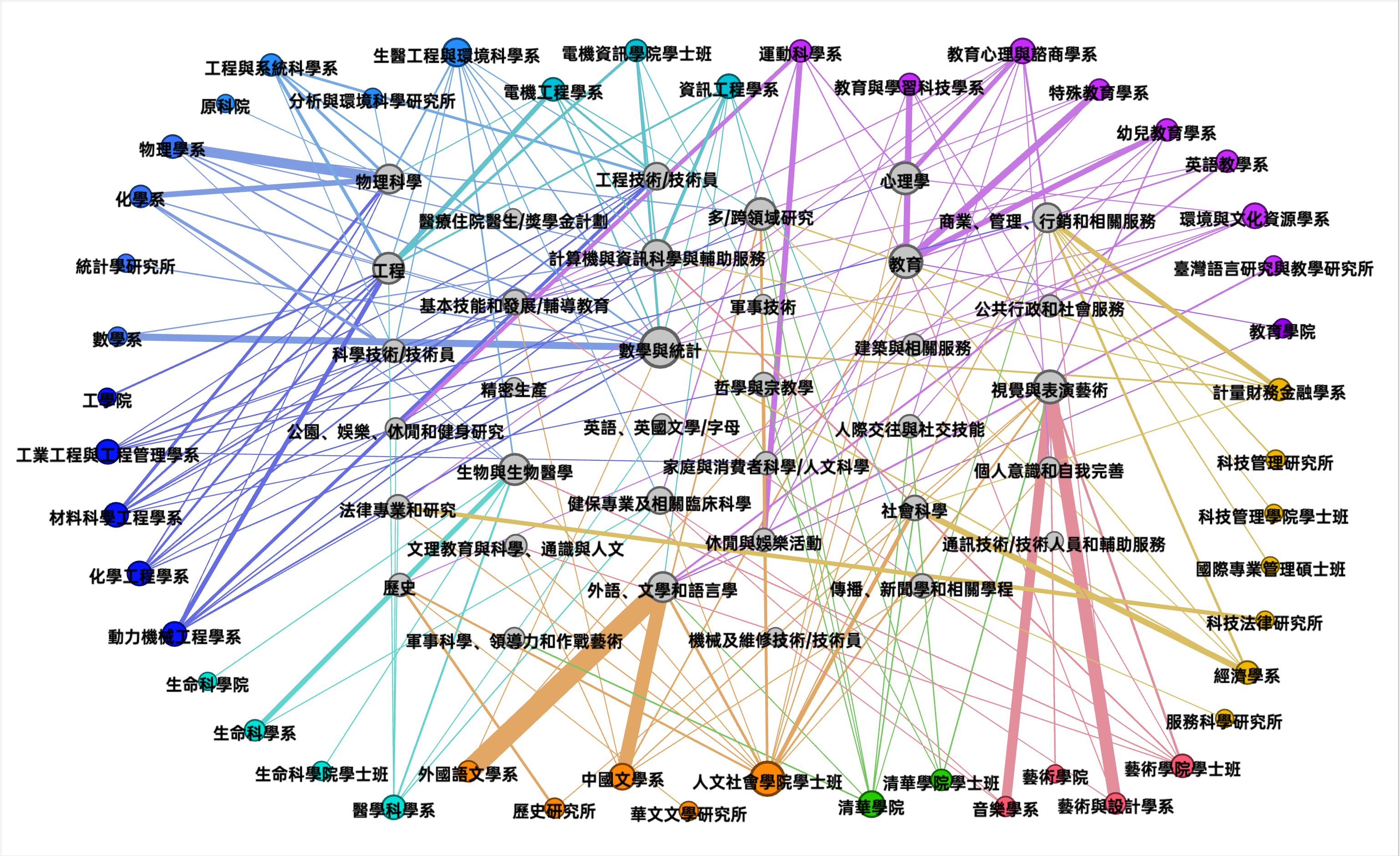 資料建立課程圖譜,透過視覺化工具找出不同課程與系所的連結程度。
