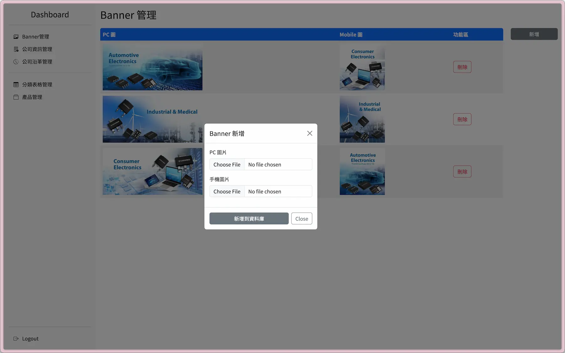 這個工具擁有一個簡單的介面,讓您輕鬆地瀏覽您的輪播圖片,並且可以直接進行新增或刪除。您可以使用這個工具上傳新的輪播圖片,也可以隨時刪除您不需要的圖片,讓您的網站上的輪播圖片保持最新和最適合的內容。