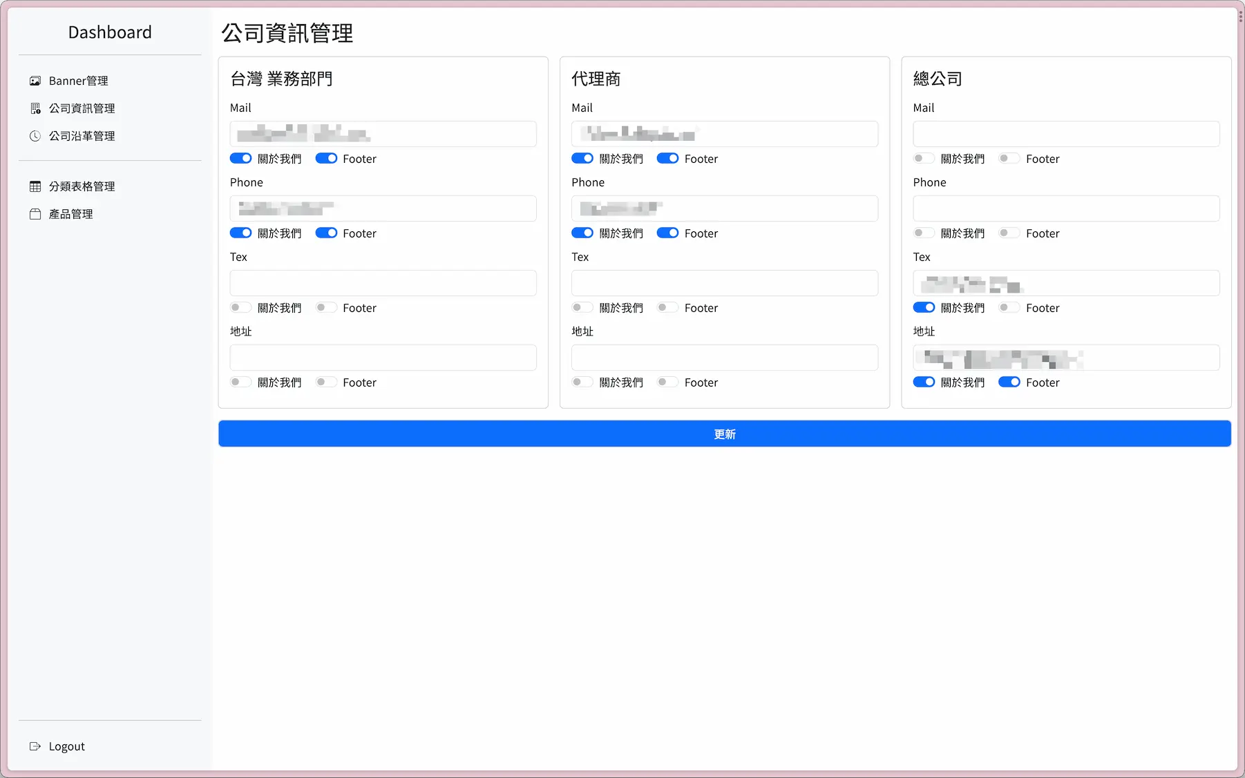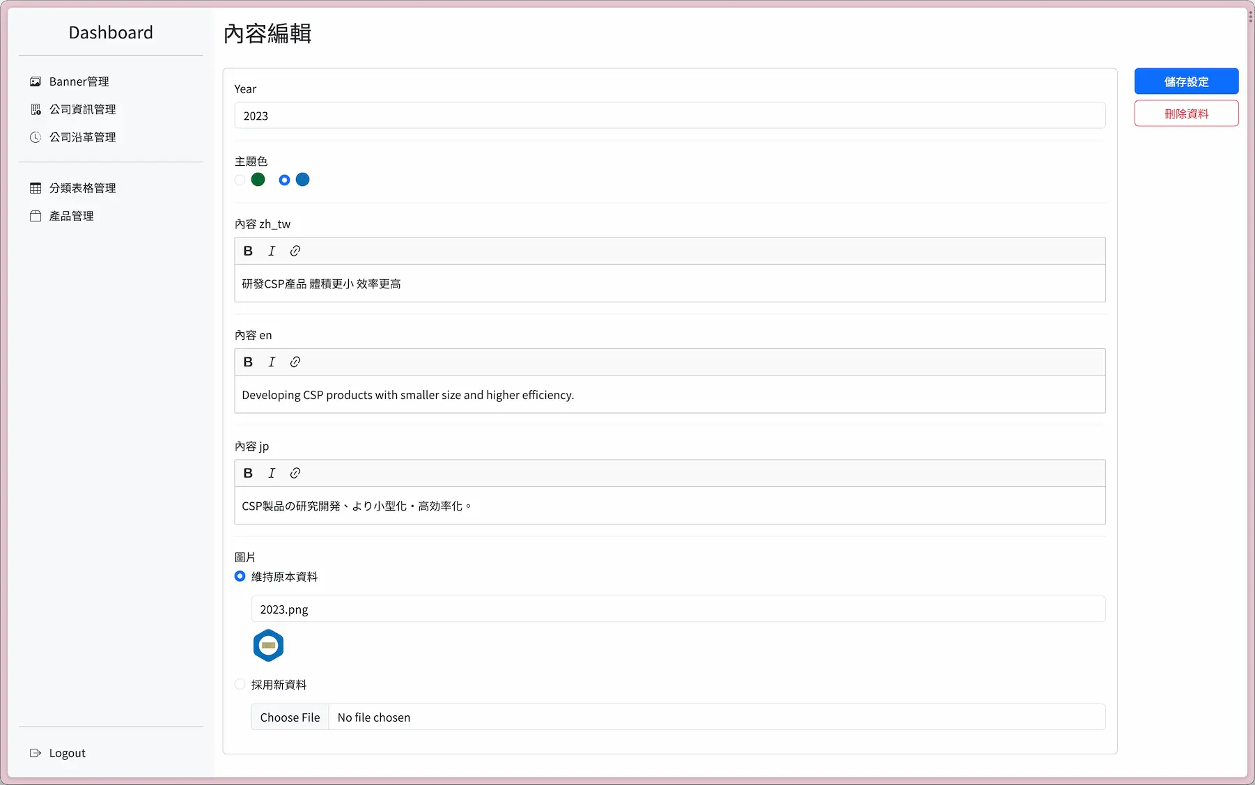Chenmko 企業委託專案,根據客戶提供的設計圖和需求,為企業提供一個完整的官網和後台系統管理產品。