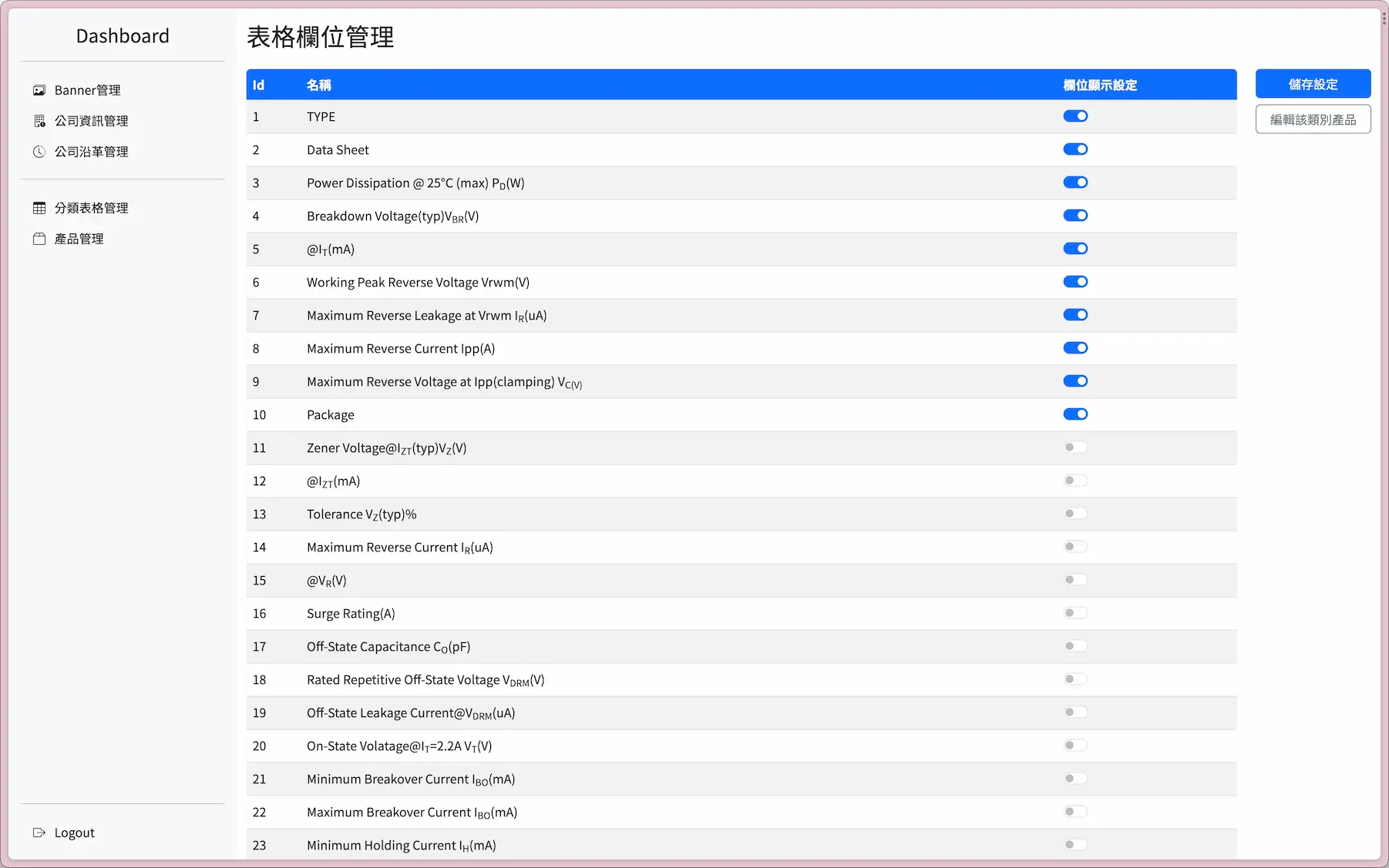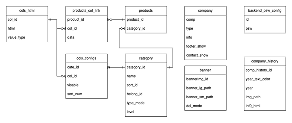 此外,團隊還設計了兩個關聯資料表:products_col_link和cols_congfigs。